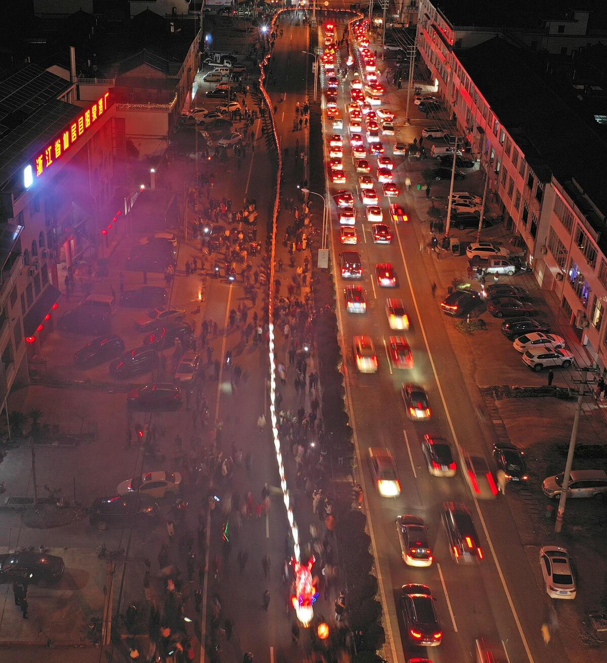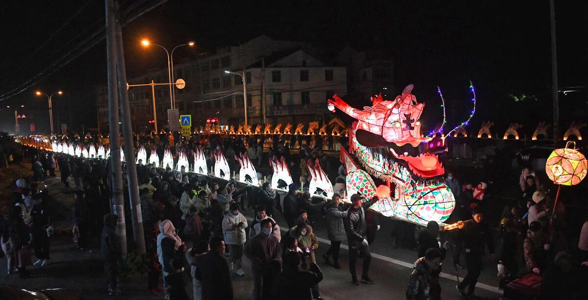 On the evening of January 27, Banqiao Village, Potan, Xianju County was full of festive atmosphere. The local villagers paraded around the village carrying dragon lanterns over 500 meters long, which added a lively atmosphere to the traditional festival and attracted many people to watch.
