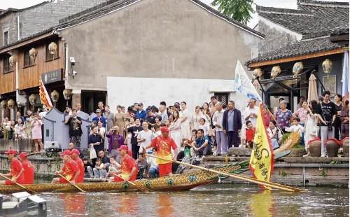 The wine fair in the Shaoxing Yellow Rice Wine Town in Shaoxing, Zhejiang province, includes dragon boat races. [Photo/Tide News]