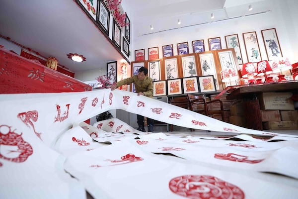 Xie Caihua, a celebrated folk artist and the Zhejiang provincial inheritor of Xiangshan paper-cutting, has unveiled a remarkable 30-meter-long artwork titled "Hundred Snakes" to mark the Year of the Snake.