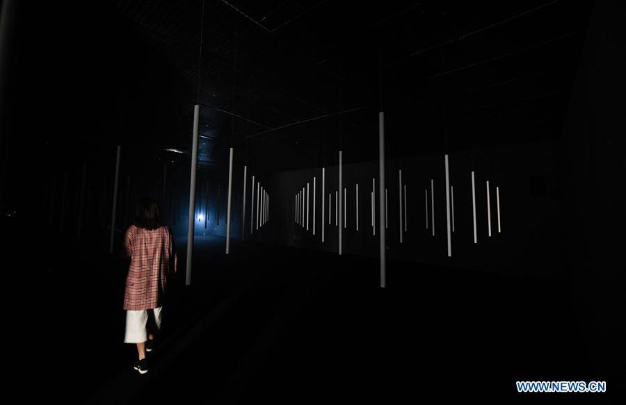 Artworks are displayed during an exhibition in Wuzhen of Tongxiang City, east China's Zhejiang Province, March 30, 2019. The 2019 Wuzhen Contemporary Art Exhibition opened here on Saturday, during which 90 artworks from 23 countries and regions will be displayed. (Xinhua/Xu Yu)