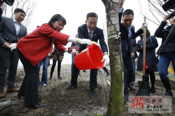 Professor Shi, together with staff and donors, planted 43 cherry blossom trees after the ceremony.