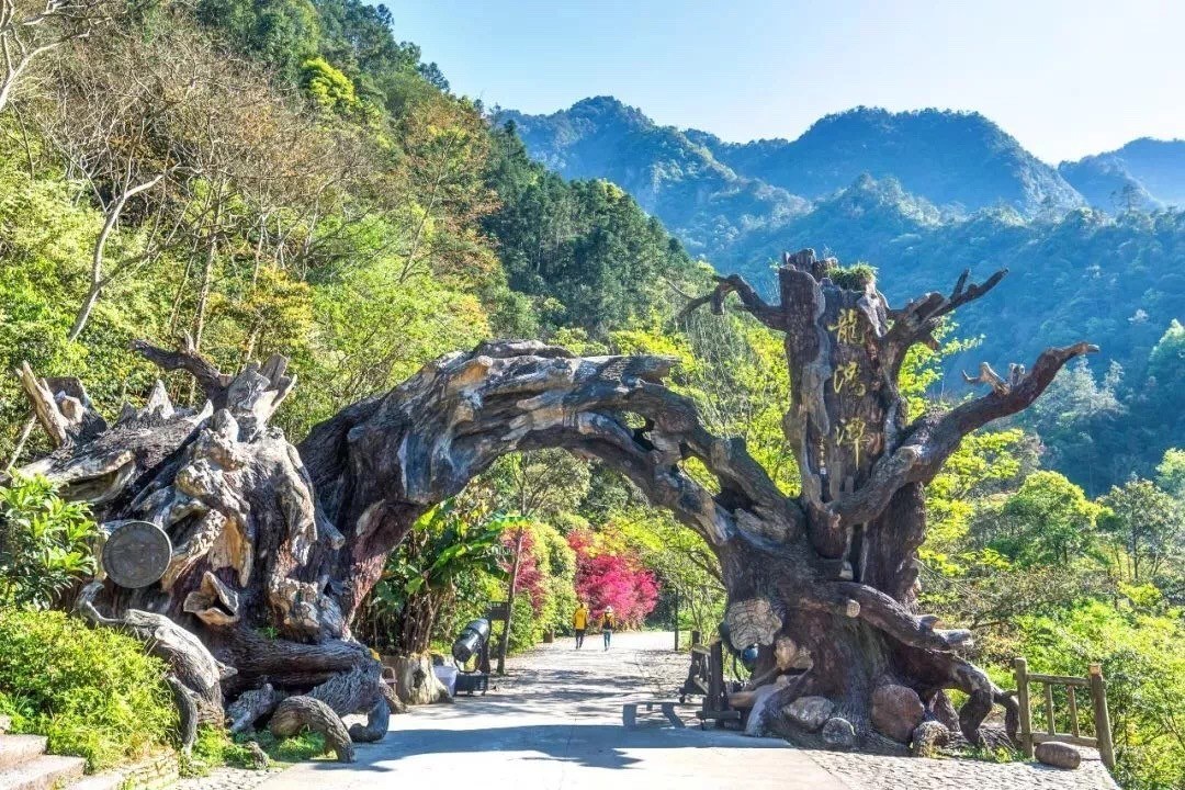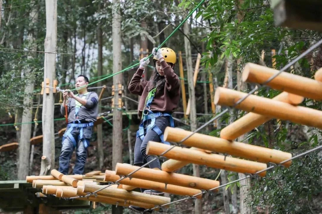 This is the "Wild Training Camp" in the scenic area. The gap between trees are utilized to construct various barriers with different difficuties for adventurous activities.