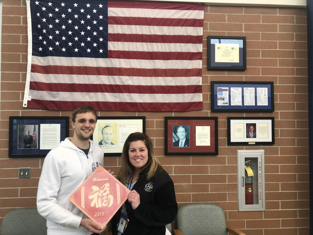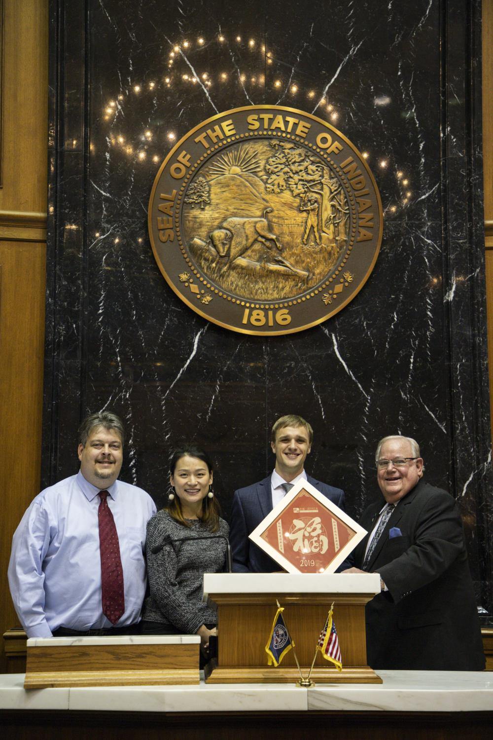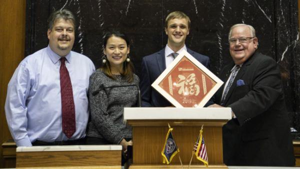 Jason还把“福”字送到了印第安纳州政府,带去来自伙伴城市的新春祝福。