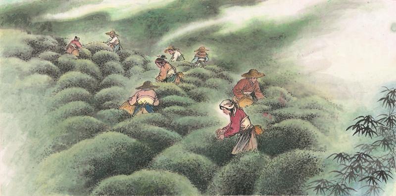 这其中,浓浓的父子之情、手足之情、邻里之情、师徒之情、朋友之情,中国人特有的人情味,浸洇在简约灵动的文字和气韵生动的水墨画卷中。这种种缱绻的情感,是中国人人文精神和人文情怀的延续,朴素却又温暖:这是《瓷》中,家里媳妇的勤劳操持,将一家老小的日常生活打点得舒适温馨;这是《茶》中,茶人炒制时,父子搭档、兄弟配合、邻里互助的默契配合;这是《纸》中,男孩们早早领悟到的对家庭的责任和担当,将那份制纸的工作不急不缓地落在自己的手上,真诚地接过,认真地完成;更是《扇》中,做扇套的阿牛娘儿子生病了,扇子铺的老板请伙计多给她一成工钱时,人与人之间的信赖和扶持。
