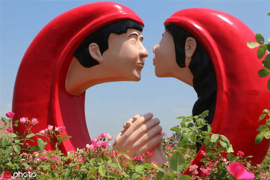 Blooming roses welcome the Qixi Festival in a rose garden in Guanyun county, Jiangsu province, Aug 6, 2019.