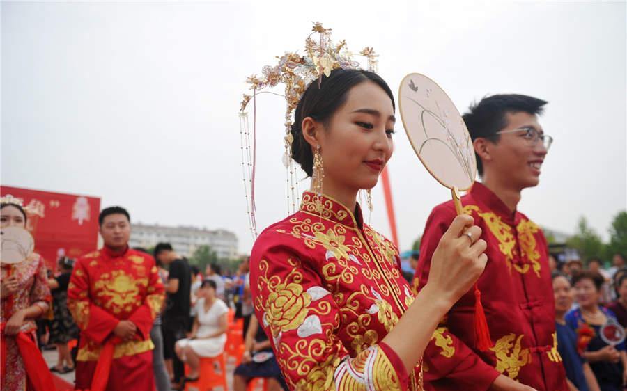A group wedding is held in Huanghua city, Hebei province, Aug 6, 2019.