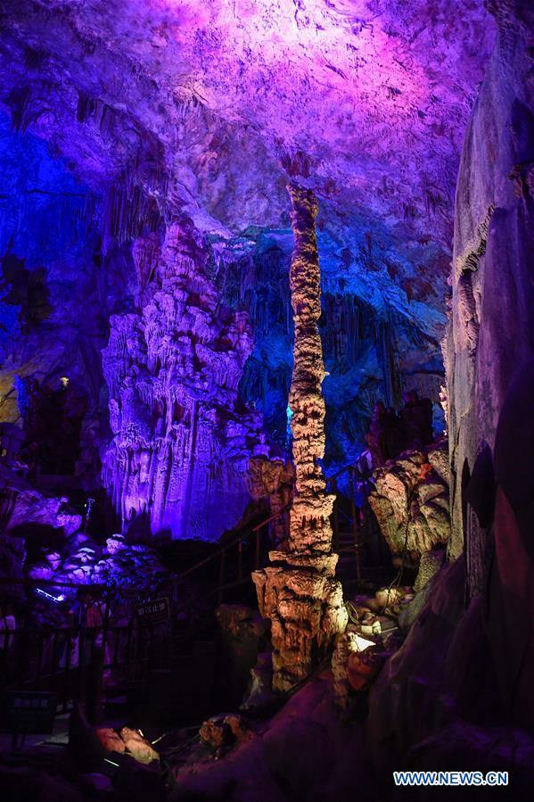 Tourists visit the Yaolin karst cave in Tonglu County, east China's Zhejiang Province, Aug. 25, 2019.