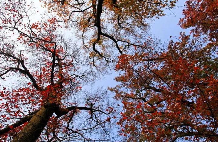 The maple leaves in the mountains are particularly charming, the paths in the temple are extremely quiet. There are leaves dancing in the wind, and then slowly falling to the ground at every corner of the scenic resort, filling the ground in a quiet and romantic way.