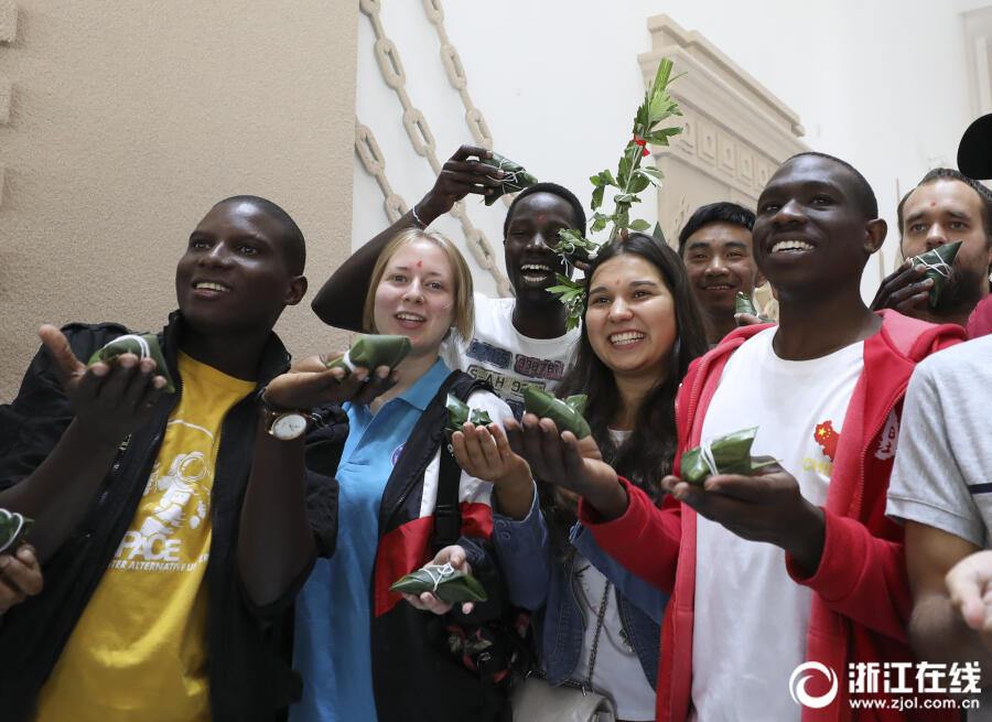 On June 1, more than 10 international students from Zhejiang Ocean University came to the Hungarian International Square in Dinghai District, Zhoushan City, to experience the traditional customs of Dragon Boat Festival.