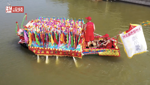 On the occasion of the Dragon Boat Festival, villagers in Xinglin Town of Changxing in Huzhou, Zhejiang, row dragon boats to welcome the arrival of the festival. The well-decorated dragon boats are made by villagers themselves. It is a traditional custom in Changxing.