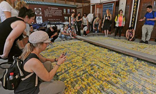 People visit the silk museum in Jili village of Nanxun District, Huzhou City, east China's Zhejiang Province, May 21, 2019. The museum exhibits the local sericulturist Wang Yishi's collection of tools for silkworm raising. (Xinhua/Tan Jin)