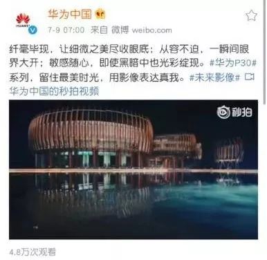 The publicity video of Huawei’s latest P30 series smartphone was unveiled in its official Sina Weibo on July 10, 2019.