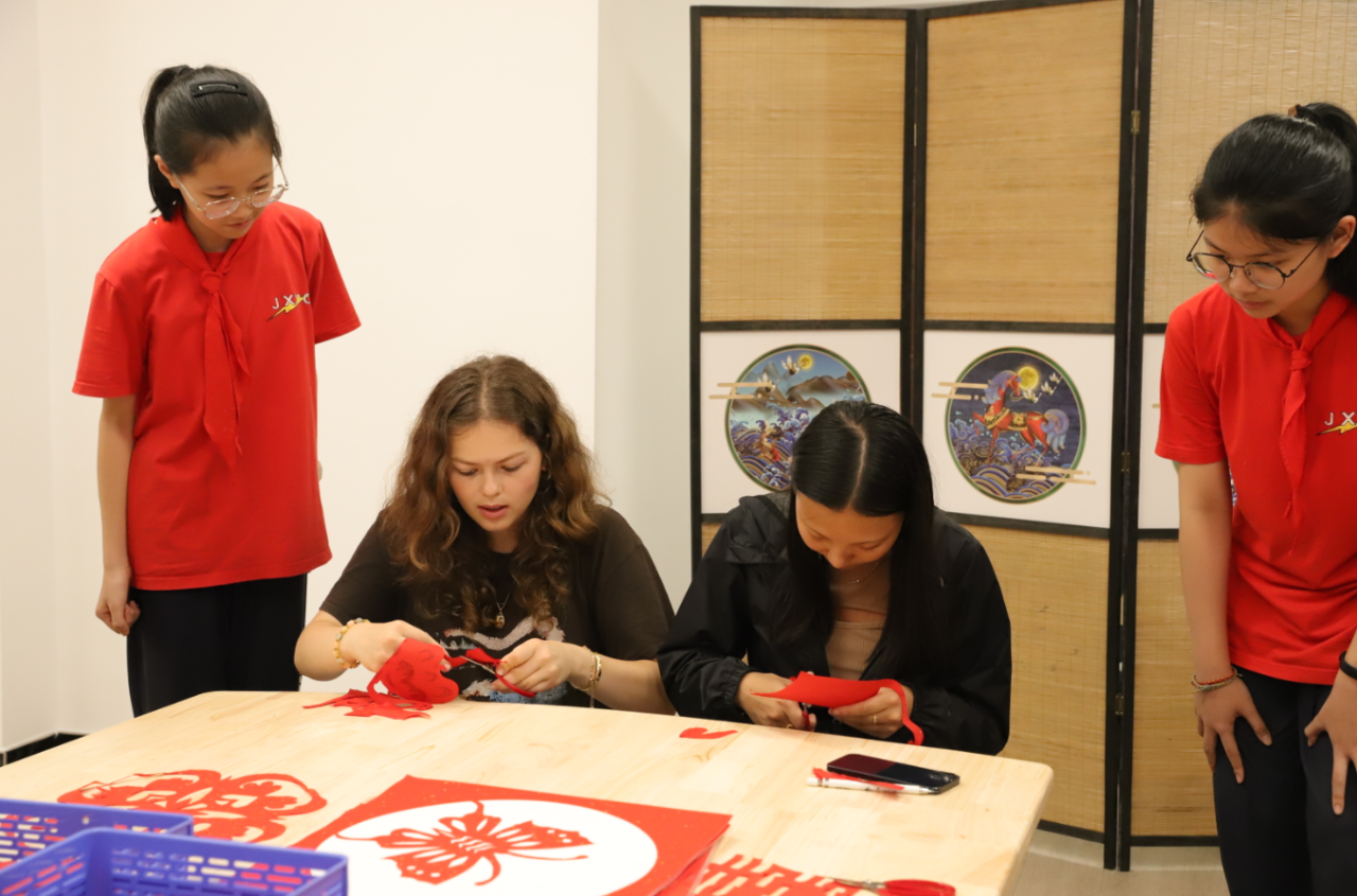 Students experience paper cutting in Suichang. [photo provided to ZICC]