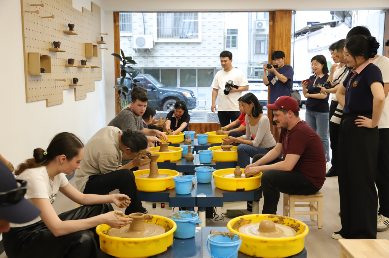 Students experience pottery in Suichang. [photo provided to ZICC]