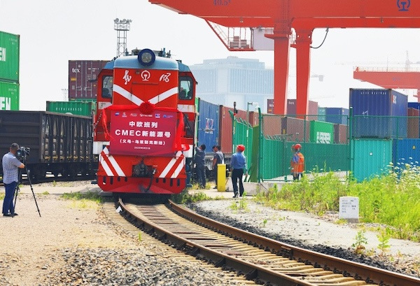 A China-Europe freight train. [Photo/Gong Xian Ming]