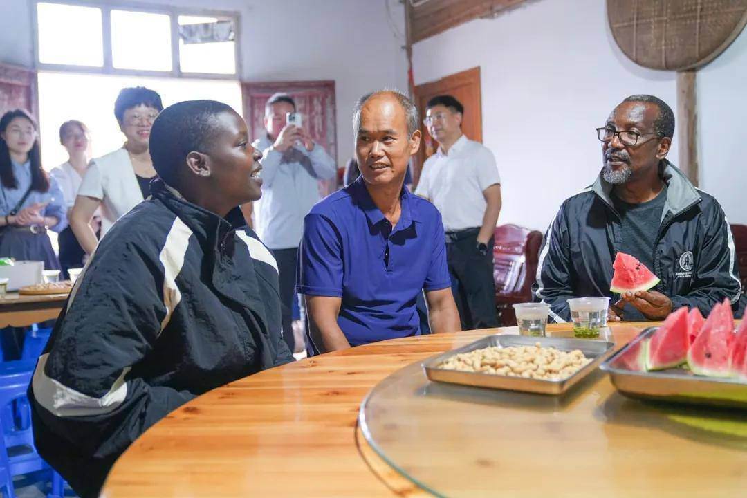 今年6月,肯尼亚编辑协会媒体团赴遂昌探望Rose一家(右一为Ken)。Members of Kenya Editors Guild paid a visit to Rose's family in June (Ken on the right).