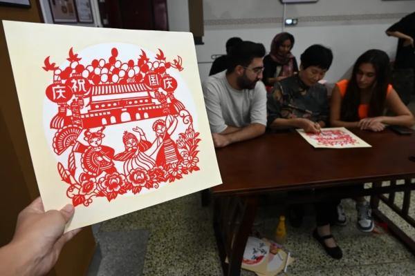 A group of 36 international students from 25 countries including Jordan and Syria experienced paper cutting in Jinhua, Zhejiang province, on the afternoon of Sept 29.