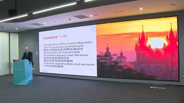 Jan Zapletal, chief of the Shanghai branch of the Czech Trade Office, delivers a speech during the Jiaxing-Czech Business Matching Conference. [Photo/WeChat account: gh_dce4a5933cde]