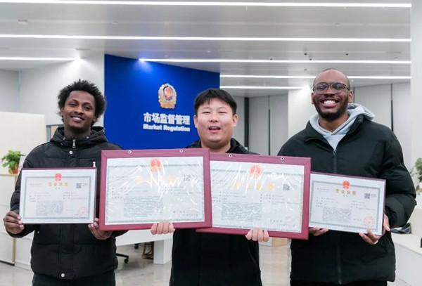 In Longyou county, Quzhou, Zhejiang province, young entrepreneur Weng Jinpeng, alongside African partners Gao Dan and Orest Akimana, has received business licenses for Zhejiang Yulaoda International Trade and Zhejiang Longyao International Trade.