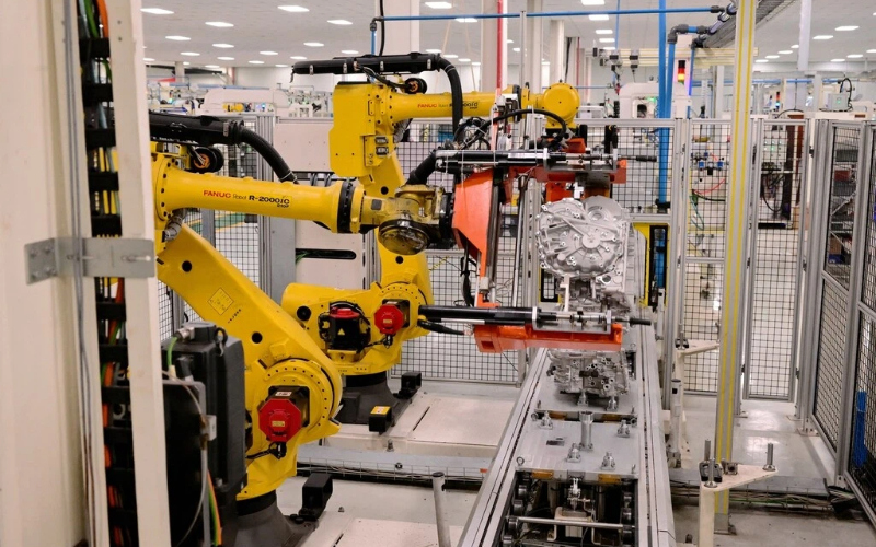 Industrial robots produce new energy vehicle parts at a factory in Huzhou, Zhejiang province, on April 1. [Photo/IC]