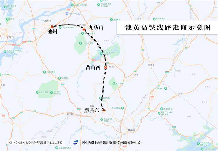 The railway line is connected to the Nanjing-Anqing High-speed Railway at Chizhou Station and to the Hangzhou-Nanchang High-speed Railway at Yixian East Station, linking renowned scenic spots such as Jiuhua Mountain and Yellow Mountain. It aims to promote the integration of tourism attractions and industries along the route, supporting the development of the Yangtze River Delta region.