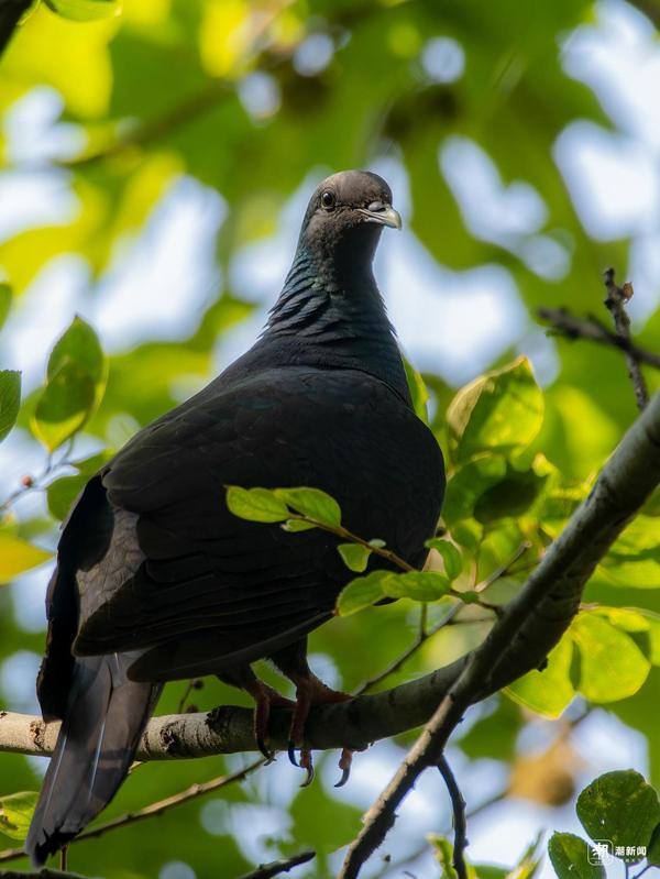 The bird, with its metallic green neck and dark plumage, caught Yao Lubing and his companions' attention as it moved through the forest. After taking photos and seeking expert identification, the bird was confirmed as a Columba janthina, a rare pigeon species typically found on southern Japanese islands and parts of Shandong province. With this finding, Pinghu now holds three new provincial-level bird records.