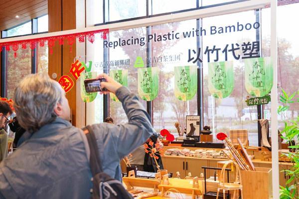 Visitors admire various bamboo products in Anji county. [Photo/WeChat ID: anjifb]