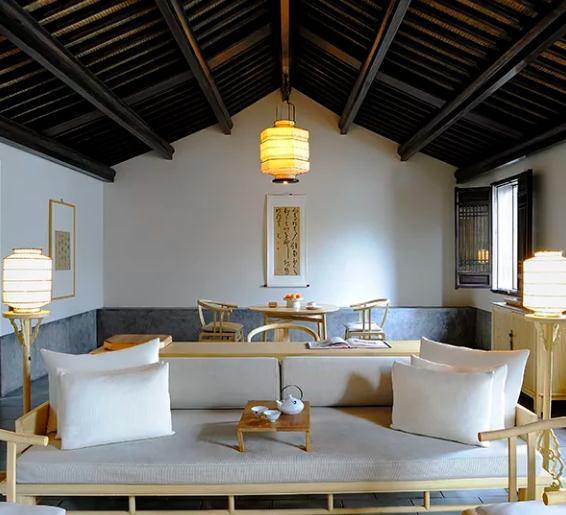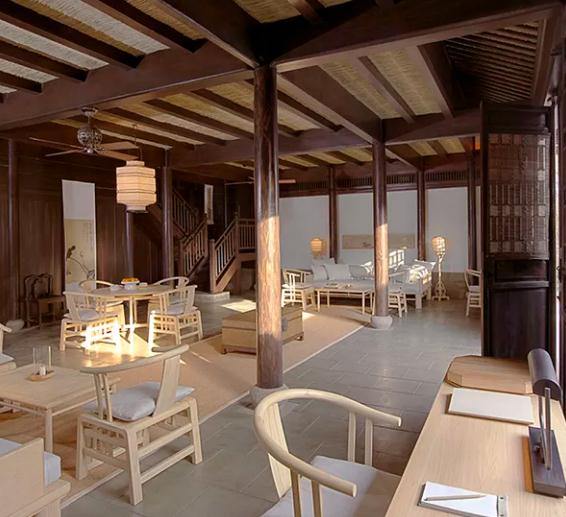 Set within old pathways and rolling streams, dwellings have been renovated in traditional Jiangnan style, using the original stone, earth and wood construction. Calligraphy reflects Hangzhou’s artistic and intellectual heritage.
