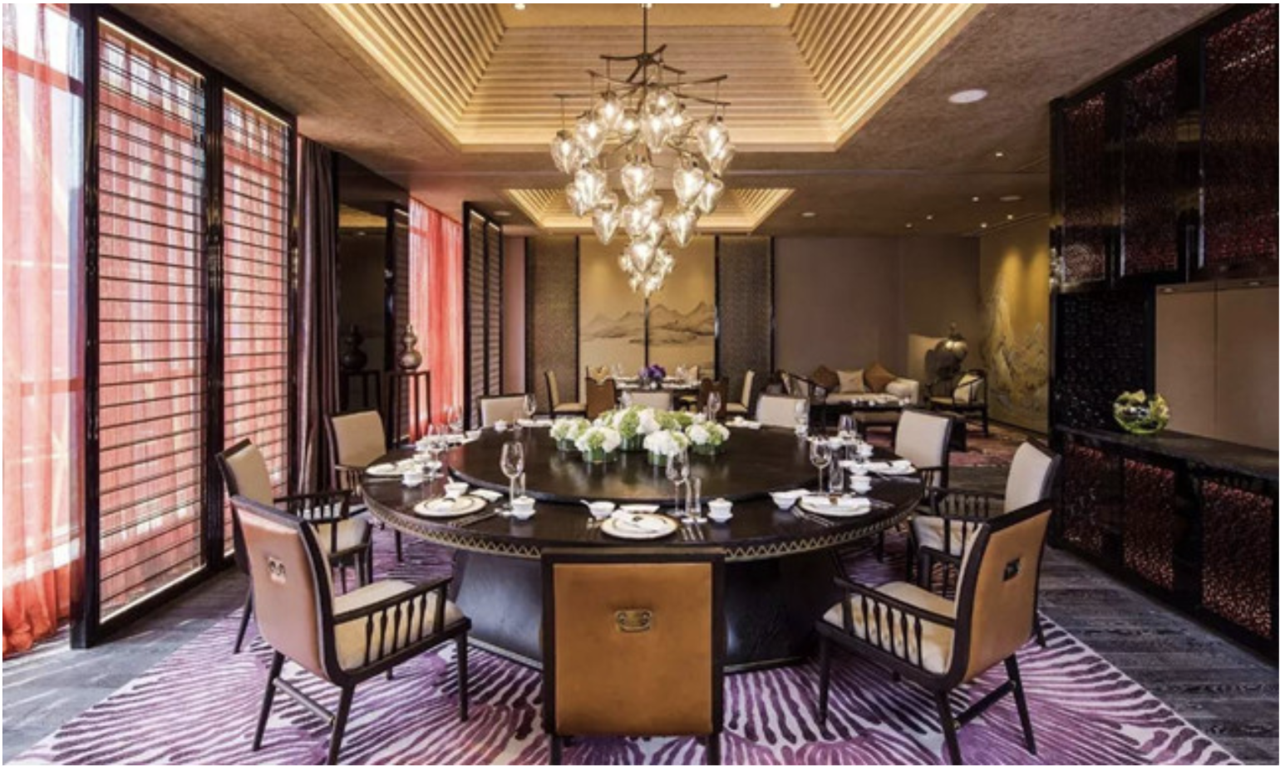The hotel has three restaurants, The Lounge, Pinju Hangzhou, and Royal Court. The lounge is an all-day dining restaurant serving Chinese and Western Food. Pinju Hangzhou is a casual restaurant offering Hangzhou and Shanghai cuisines. Royal Court is a Chinese restaurant with exclusive private dining rooms.
