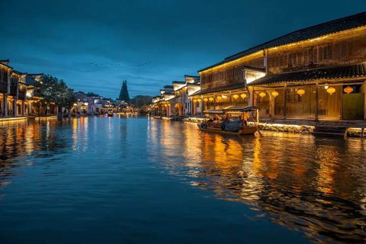 As night falls, the night scene light show of Nanxun Ancient Town comes on stage. Walking slowly along the river bank in the small town, you are always amazed by the beautiful scenery on the stone bridge. Without the hustle and bustle of the day, the night in the ancient town is beautiful and quiet.