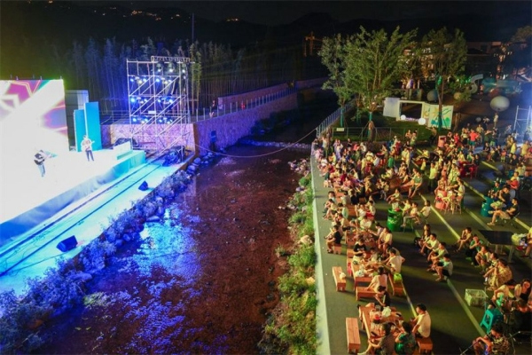 Tourists watch live performances in Moganshan town, Deqing county, Huzhou, on July 20. [Photo/Huzhou News Media Center]