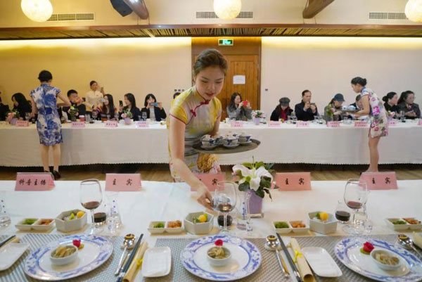 Waitresses serve Hangzhou Cuisine to reporters from home and abroad at a food festival recently held in Hangzhou, Zhejiang province. (Photo provided to chinadaily.com.cn)