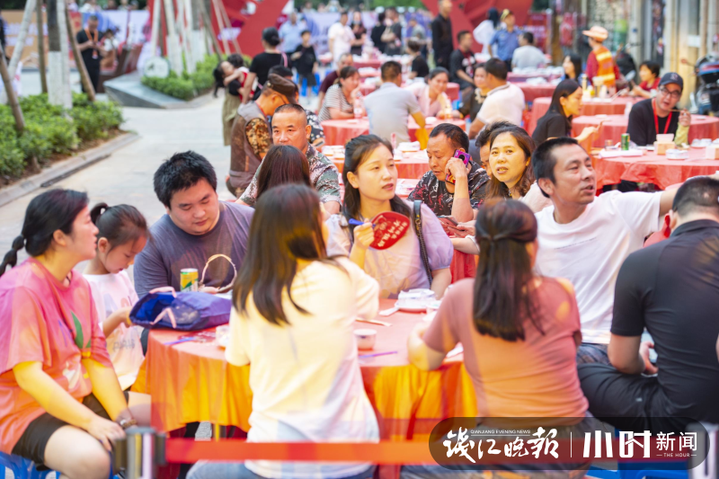 On June 7 evening, Jiande Yangxi Street held a grand "Yangxi Food Box" opening ceremony. At 5 pm, the outdoor temperature was quite high, but Chaoyang Road was already crowded. The prepared tables and chairs were quickly "occupied" by people.