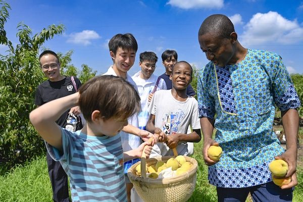 Yaozhuang town in Jiaxing, Zhejiang province, recently celebrated its annual yellow peach harvest with families from the Netherlands, Nigeria, Egypt, and the Philippines, as well as local families.