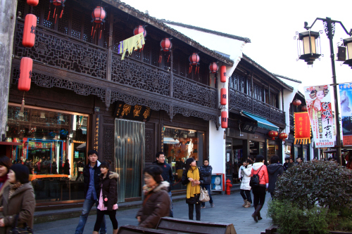 At the end of the street is a snack lane where visitors can find a large variety of delicious local snacks, and the roasted walnuts and "dragon-whisker" candy (龙须糖) are the most famous of these. There are also many famous time-honored restaurants, teahouses and shops. Generally, the tourists prefer to visit Hefang Street for shopping and eating since it is a classic destination to get to know and experience attractive Hangzhou.
