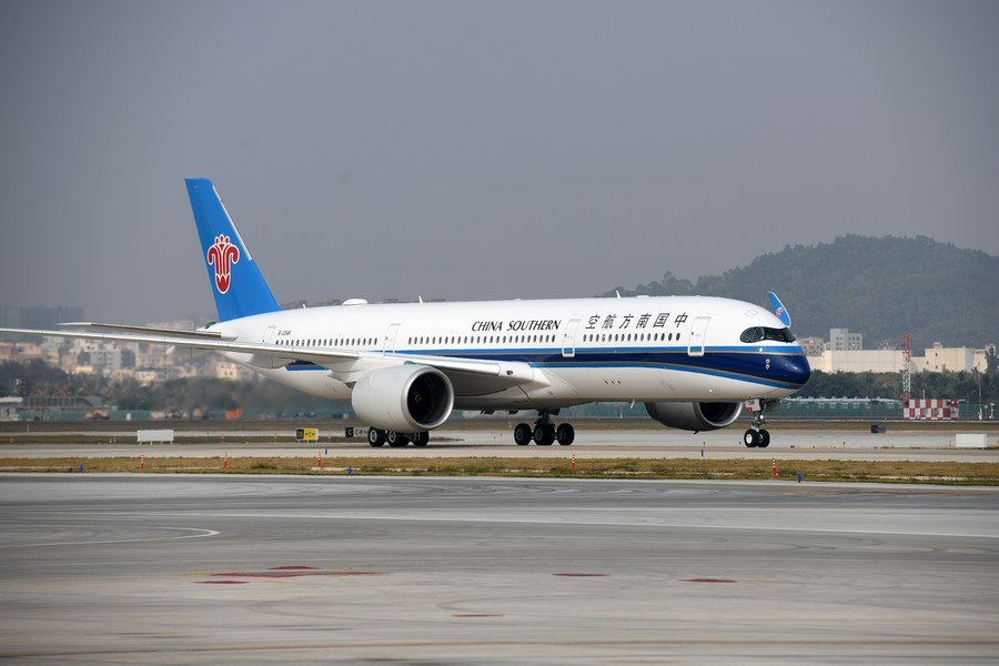 An Airbus A350-900 arrives at the Baoan International Airport in Shenzhen, Guangdong province, Jan 6, 2022. (Photo/Xinhua)