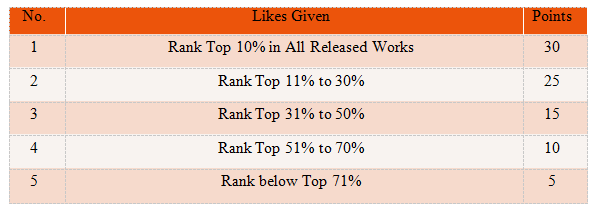 The total points of the works = Professional judges’ points (90%) + online votes (10%)