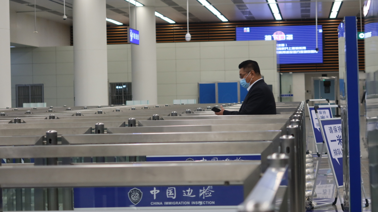 A Hong Kong voter who lives in the Chinese mainland passes through a checkpoint to Hong Kong for LegCo elections in Hong Kong, China, on December 19, 2021. (Photo/CGTN)