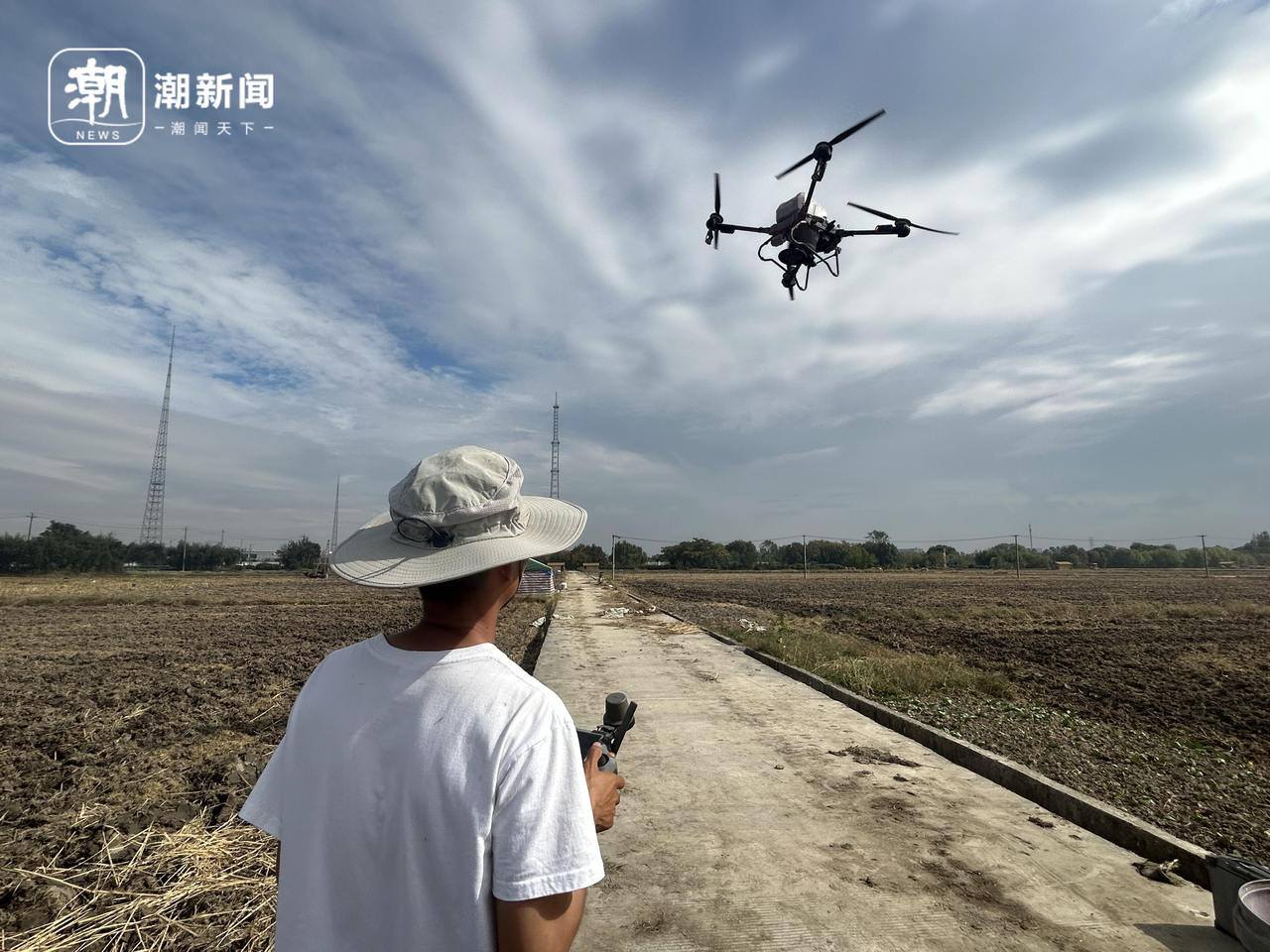 “起飞播种!”11月14日上午,余杭区良渚街道石桥村直塘港粮食功能区的田埂上,刚刚完成秋水稻收割的严水永,又马不停蹄地与农业无人机飞手一起,忙碌着新一季的小麦播种,按照计划今天他和飞手一起将完成近400亩的农田播种。