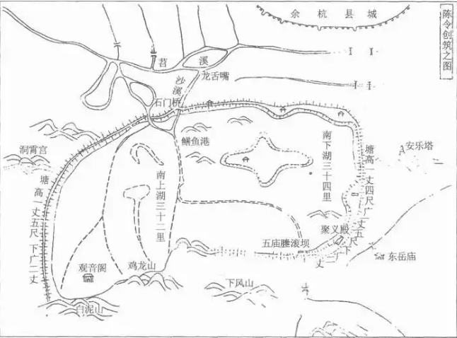 公元173年,余杭县令陈浑发动十万民众在县城西南筑塘围湖,建成了南湖,以分杀苕溪水势。同时还在苕溪右岸修筑大堤,使南苕溪、中苕溪和北苕溪的滔滔洪水,在瓶窑汇成东苕溪,折而向北,解除了大堤以东平原的洪涝灾害。这条大堤因位于杭州之西,加之水势凶险,被后人称为西险大塘。