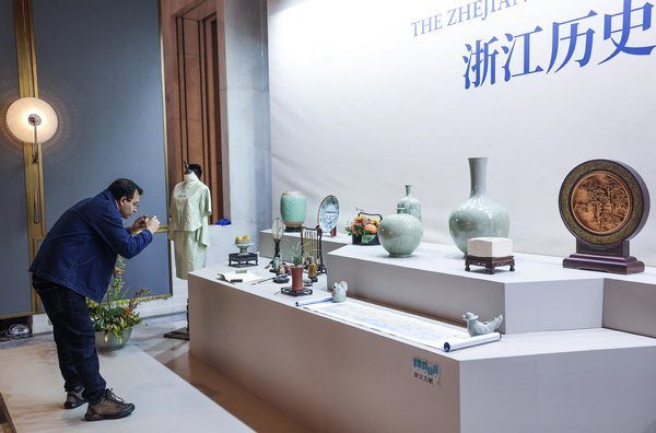 This photo taken on Nov 25, 2024 showcases the distinguished masterworks from Zhejiang's traditional industries at the Zhejiang historical classic industries exhibition. [Photo/Xinhua]