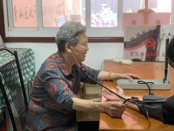 At that time, she and Meng Cainv, 58, set up a stall equipped with a long table, a sphygmomanometer and a stethoscope at the gate of Yinhe community to help people measure their blood pressure for free.