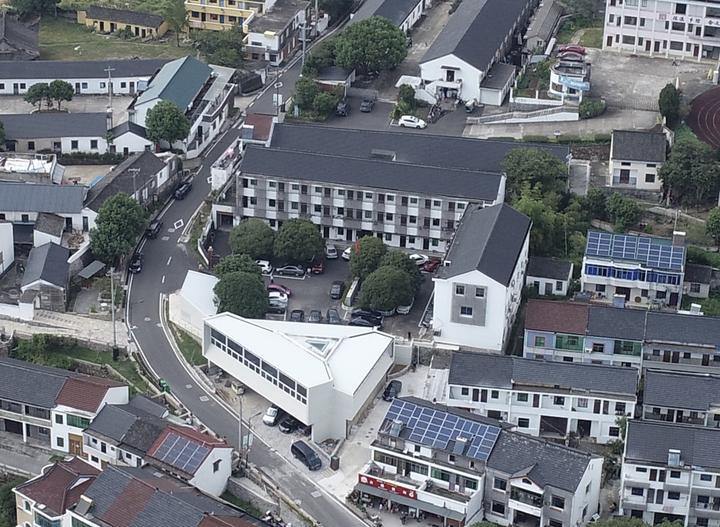 Another architect, Wang Bin, designed and built a Convenience Service Center which features the shape in the triangle in Shangyu’s mountain area.