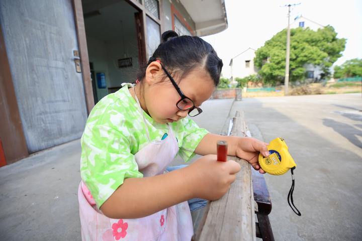 Feng has now learned some simple carpentry skills such as measuring lines, sawing wood, and planing wood. Though a thin layer of callus on her little hand has come into being resulted from the frequent manual work, she is still immersed in it.