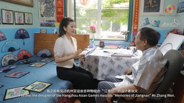 At the age of 90, Wu Shanzeng is the iconic inheritor of Pujiang paper-cutting. He started designing a fan for the Hangzhou Asian Games a few months ago. After continuous design and modification,the "Asian Games Fan" was finally made.