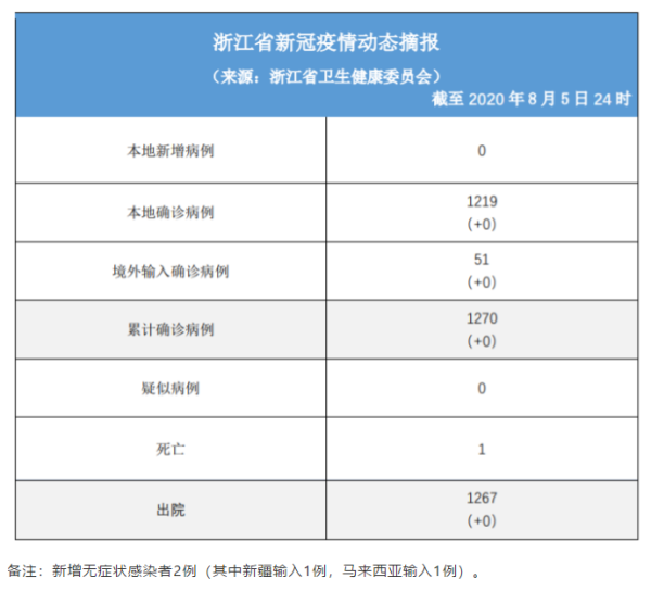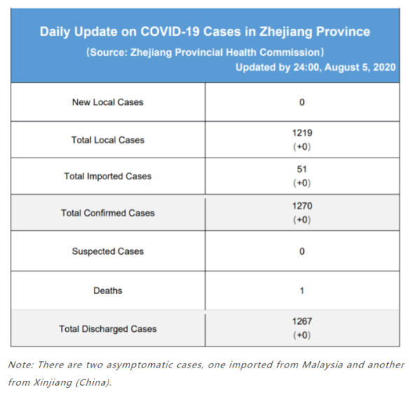 Daily briefing of COVID-19 in Zhejiang: August 6th浙江省有关疫情动态摘报 (8月6日)