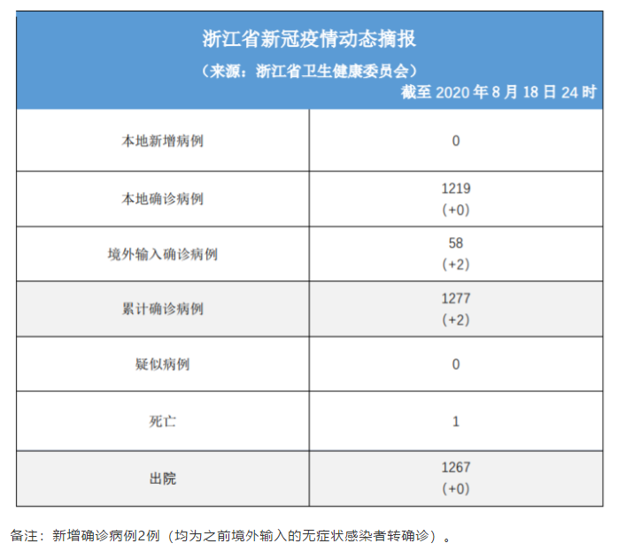 Daily briefing of COVID-19 in Zhejiang: August 19th浙江省有关疫情动态摘报 (8月19日)