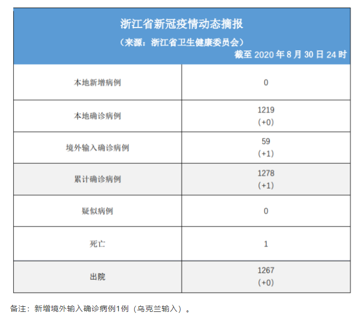 Daily briefing of COVID-19 in Zhejiang: August 31th浙江省有关疫情动态摘报 (8月31日)