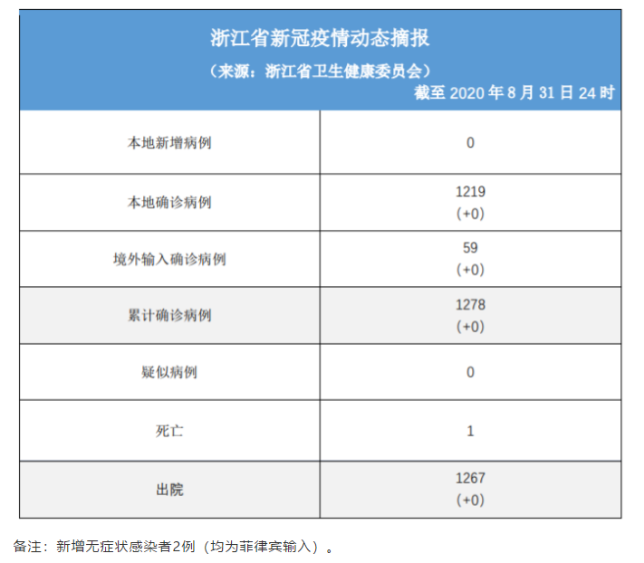 Daily briefing of COVID-19 in Zhejiang: September 1st 浙江省有关疫情动态摘报 (9月1日)