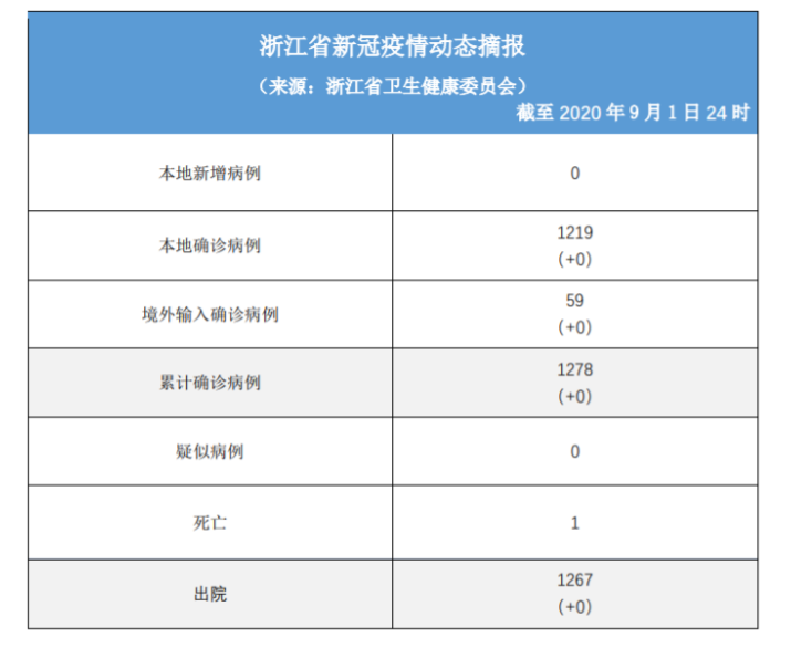 Daily briefing of COVID-19 in Zhejiang: September 2nd 浙江省有关疫情动态摘报 (9月2日)